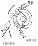 物料的磁选是在电磁分离滚筒的磁场中借助于磁力与机械力对粒度的作用而实现的。当被选物料通过磁场时,由于磁性粒度与非磁性粒度所受磁力的不同,即生产不同轨迹,磁性物料被吸附在滚筒表面,随着滚筒转至后部无磁区落下来,非磁性粒度则仅受离心力的作用向前抛出、这样就使两者都分离出来。 | |||||||||||||||||||||||||||||||||||||||||||||||||||||||||||||